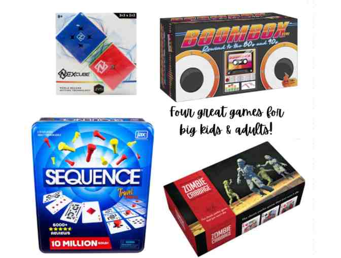 Rewind to the 80s and 90s with the Boombox Game! Become a Mix Master of the 80s and 90s. Players create their own compilation of songs & life scenarios. Each player suggests a song for each scenario. Win a Scoring Token if your song is selected! The player with the most tokens win & is crowned Mix Master!