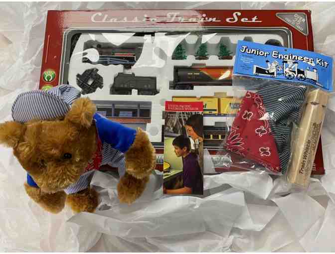 All aboard for fun! This train-themed gift pack is perfect for the little railroad enthusiast in your life.