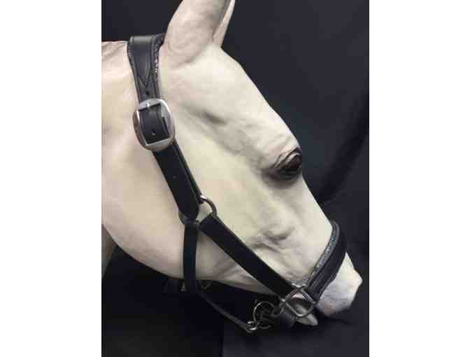 This beautiful custom made halter has stainless steel hardware and is sized for an average horse.