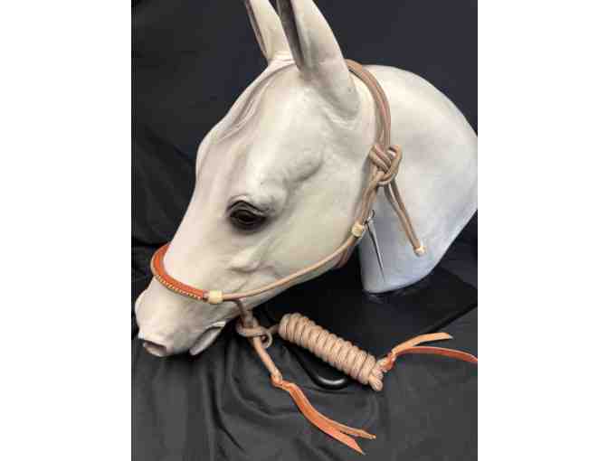 Buckaroo Leather Deluxe Rope Halter with Lead, Tan
