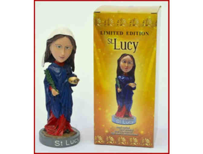 Lovingly created and donated by SaintBobbles.com, Saint Lucy is part of a Box set of all six Inaugeral Saints in Limited Edition and numbered. Saint Lucy, Patron Saint of Sweden. Suffered through torture vowing to God and restored sight at dead!