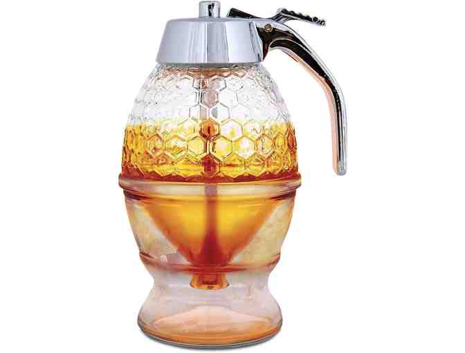 Attractive Glass Container: Features a beautiful honeycomb-shaped glass honey dispenser; made of lightweight yet durable glass, this honey holder is ideal for everyday use.