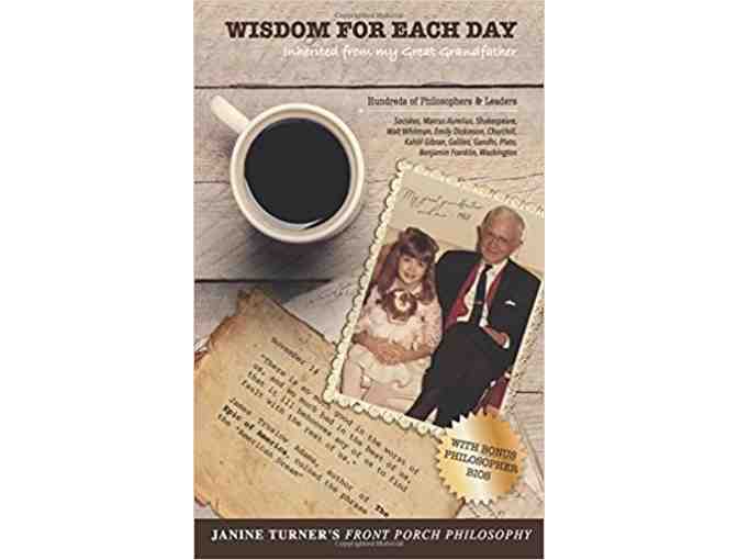 - "Actress Janine Turner publishes her second book in her Front Porch Philosophy series with "Wisdom For Each Day," a daily devotional containing inspiration from hundreds of enlightened individuals throughout the centuries, ranging from Socrates and Winston Churchill to Will Rogers and Ralph Waldo Emerson. This book was inspired from an old compilation of 365 typewriter typed and hand crafted epigrams attributed to Turner's great grandfather Richard Hayes Burgess (1885-1976)."
