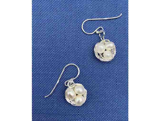 Sterling silver earrings - freshwater pearls in a nest