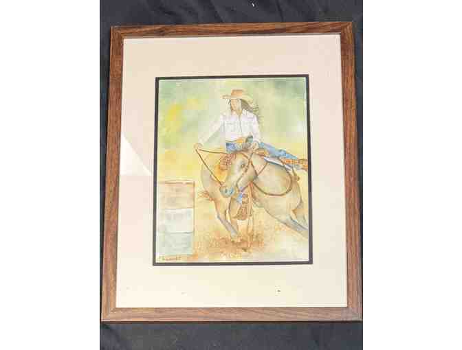 Barrel Racer water color, wood framed and matted,