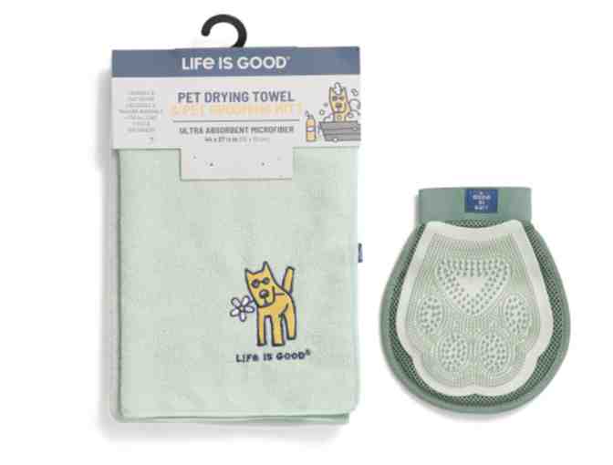 Life is Good Microfiber Pet Towel and Grooming Glove Set