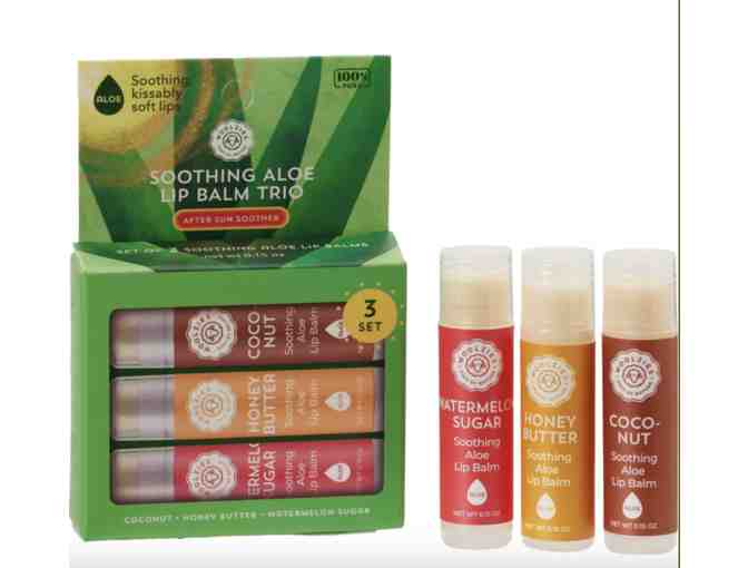 Keep lips hydrated and healthy with Woolzies' Soothing Aloe lip balm trio.