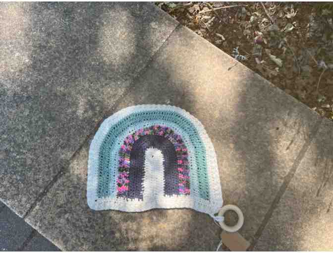 Bring comfort, color, and conscious craftsmanship to your little one’s world with this beautifully hand-crocheted rainbow lovey. Thoughtfully made from 100% recycled cotton yarn, this soft and sustainable security blanket is perfect for snuggles, stroller rides, or soothing moments.
