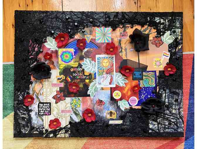 Created with the Renaissance of Resistance in mind, this piece symbolizes a beautiful queer eruption of pride, power, and love towards the fight for freedom. Breaking through and forcing back the structures which have suppressed us, the resistance blooms and grows. Like flowers growing up from cracks in cement; like ember and ash that reignite at the center. Towards abundance and happiness, we take up space. We fight. Through That Which Holds Us, we will rise.