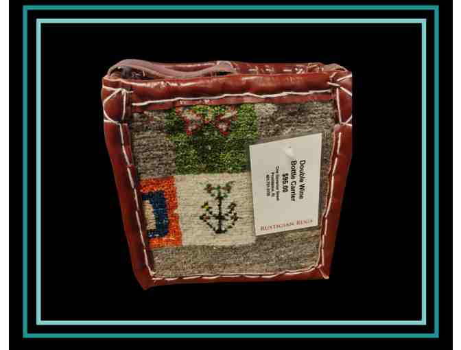 This handcrafted wine bottle carrier is made from repurposed 100% wool rug fragments—each piece a unique blend of Qashqa’i tribal weaving, Baluch Soumaks, and Gabbeh designs from southern Iran. Finished with hand-stitched leather, it’s both a functional carrier and a statement piece, perfect for gifting, picnicking, or sparking conversation at your next gathering.