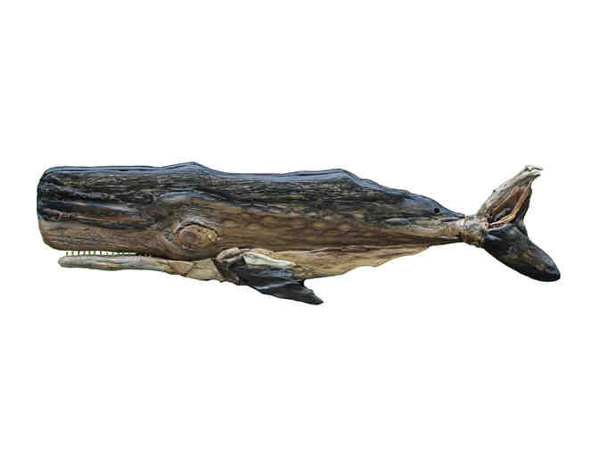 This Whale is composed of driftwood from many beaches. The first piece of driftwood was gathered from a beach on the BVI Caribbean Island of Jost Van Dyke. The second piece was found near a walkway next to The Brooklyn side of The East River ( in full view of The Statue of Liberty! ) The third and largest piece, is from salvaged, sunken slabs thrown into Lake Willoughby, Vermont from a mill which operated next to the lake in the early 1800’s. ( This driftwood wood was salvaged and donated by Jay Case, the owner of Larry’s PX ). Finally, many additional pieces of driftwood were found on my walks on local beaches such as Hardings Beach in Chatham, and Nauset Beach in Orleans.