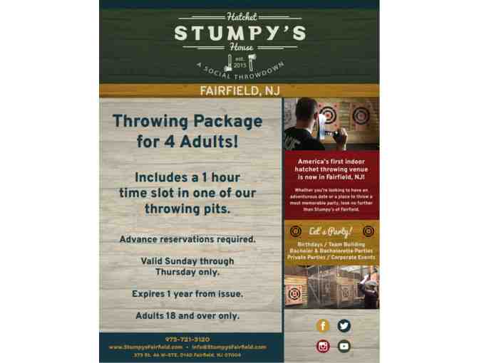 Ready to let off some steam and have a blast? Gather your friends for an hour of axe throwing at Stumpy's Hatchet House in Fairfield, NJ followed by dinner at Frank Anthony's in Verona.