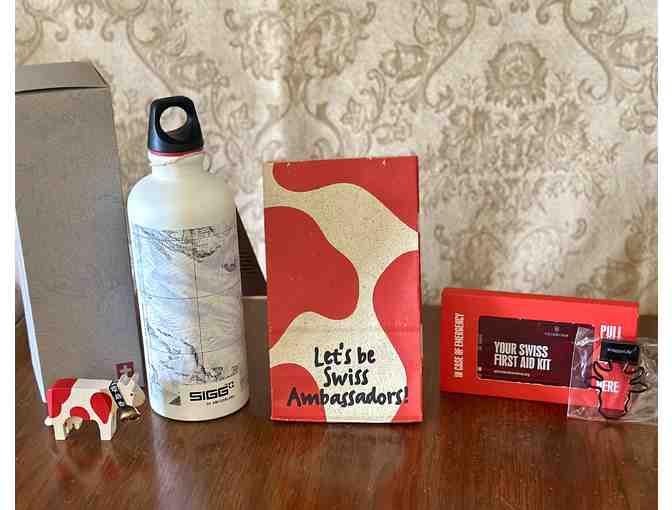 Sigg Water Bottle, Victorinox "Swiss Card" First Aid Kit & "Happy Lilly" bag