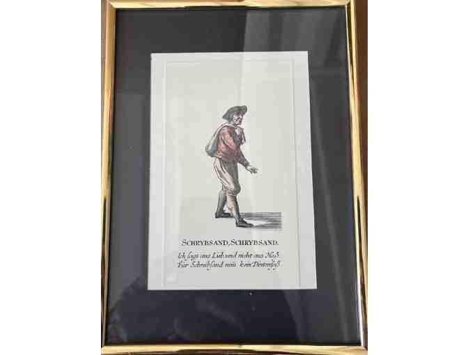 Meet this dashing traveler straight from the cobblestone streets of 1700s Europe, dressed to the nines in his classic tricorn hat and breeches, carrying his humble bag of tales and secrets. This beautifully hand-colored print is more than just vintage art—it’s a conversation starter, a stylish nod to literary history, and the perfect accent piece for your home office, library, or study. Imagine it gracing the wall of a cozy reading nook, inspiring creativity and old-world charm every day. Whether you’re a lover of history, quirky decor, or unique collectibles, this framed treasure invites you to own a slice of a bygone era with wit and warmth.