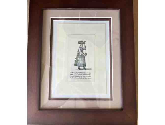 Here’s your chance to welcome a spirited 18th-century countryside muse into your collection! Carrying her basket balanced on her head with grace and armed with a book of wisdom, this lively hand-colored print captures the everyday charm and timeless patience of rural life. Perfect for someone who adores folk art, vintage fashion, or European heritage, this print will add warmth and character to your living room, kitchen, or gallery wall. It’s a delightful story told in color and verse—ready to spark conversations and brighten any space with a dash of history and heart.