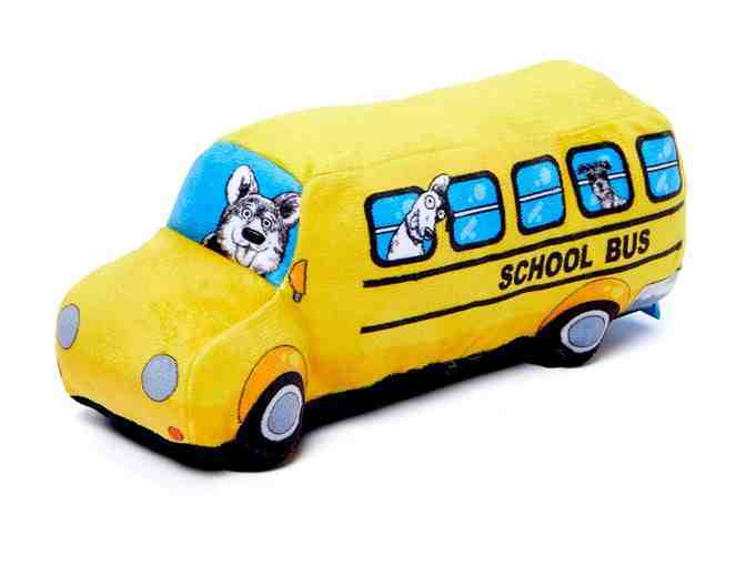 We are going bark to school on the magic drool bus. Packed with double the fluff and has a large squeaker. 10 inches W x 5 inches H x 4 inches D. From the makers of Barkbox.