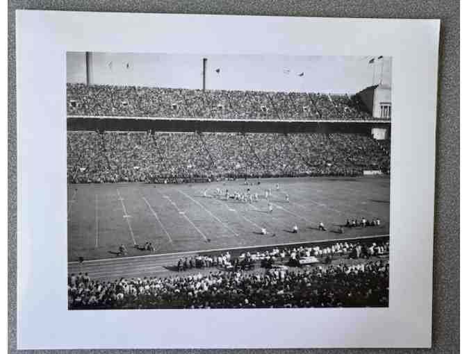 OHIO STATE BUCKEYES at Ohio Stadium. The photo depicts action at a game in the mid 1950s versus Big 10 foe University of Iowa Hawkeyes.