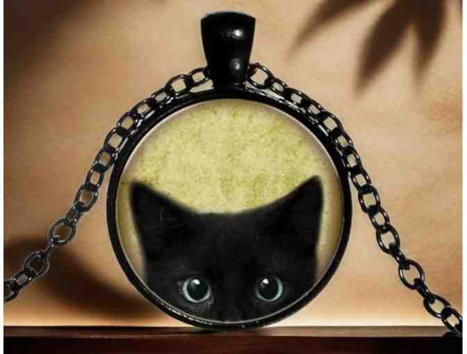 Black Cat Round Coin Necklace