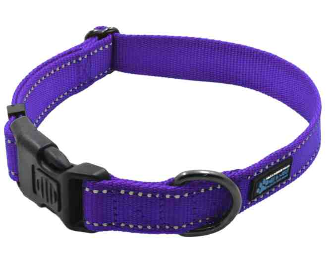 Our NEO Dog Collar is a heavy duty, reflective locking nylon clasp dog collar. The collars are 2mm thick and very strong and made for the largest of dogs. Its quality nylon webbing contains reflective stitching for improved nighttime visibility. It features a lockable nylon clasp which prevents an accidental releasing of the latch when grabbing the collar.