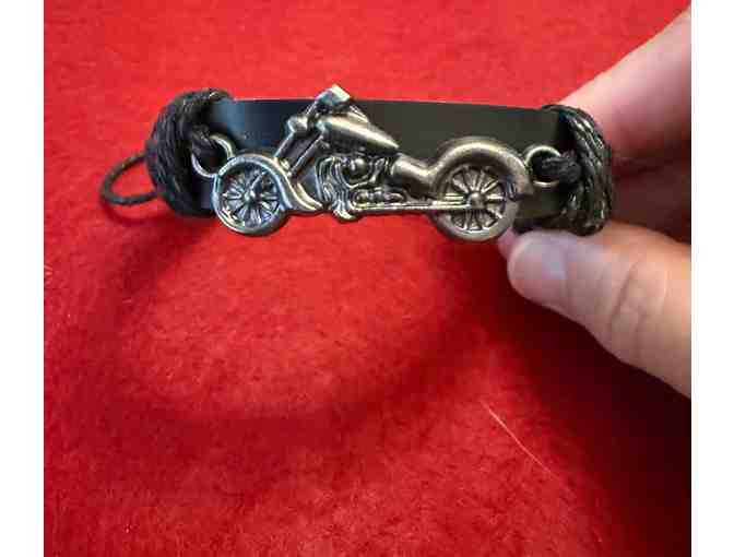 This leather bracelet is perfect for the motorcyclist. It can be adjusted to almost any size.