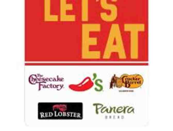 Let's Eat gift card - you can choose to spend it at The Chesecake Factory, Cracker Barrel, Red Lobster, Chili's or Panera Bread.