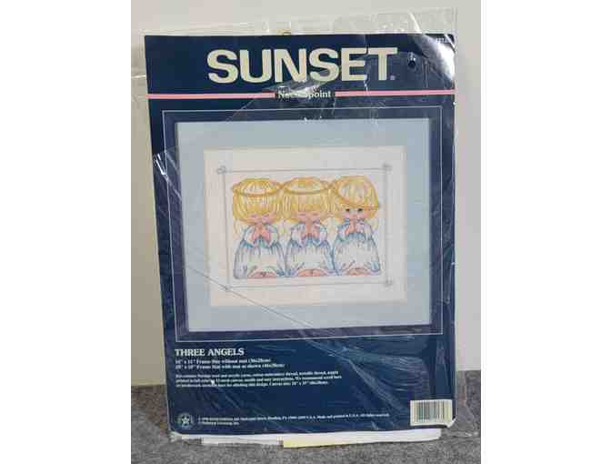 Bring a touch of heavenly beauty to your home with this "Three Angels" Sunset Needlepoint Kit.