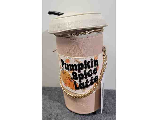 Celebrate your love for all things cozy with this adorable "Pumpkin Spice Latte" crossbody bag, brand new with tags (NWT)! Shaped like your favorite fall treat, this stylish purse features embroidered lettering, a secure zip closure, and a trendy chain strap for a chic, seasonal look.