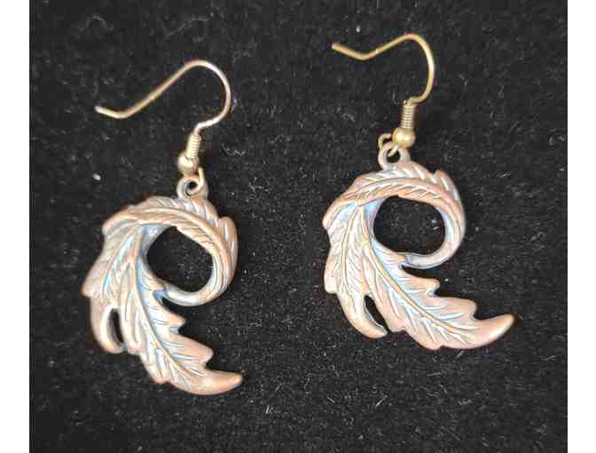 Aqua Copper Metal Leaf Earrings - Unique 3" Artisan Design