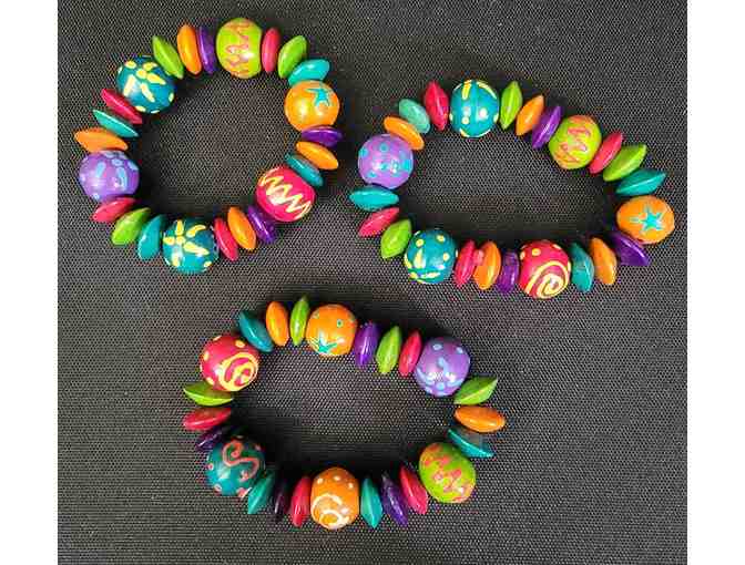 Painted wooden bead stretch bracelet Set of 3