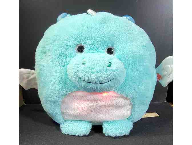 This plush is part of the BumBumz collection, which are soft, collectible beanbag plush toys. The Aquabumz is a light blue dragon with a sparkly, light-up belly and wings.
