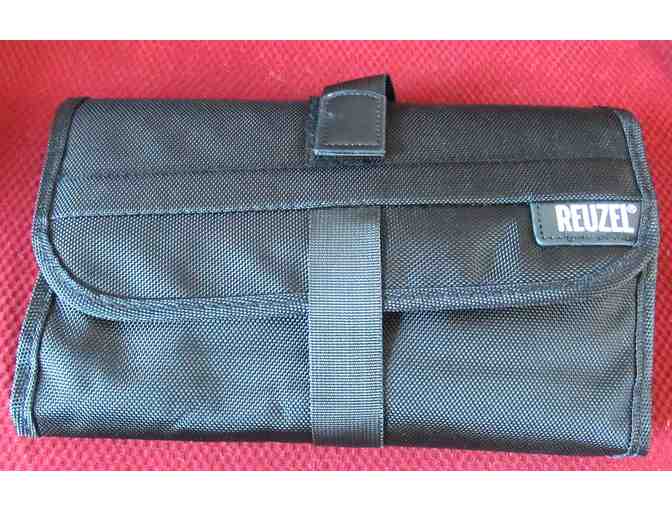 Reuzel Men's Products Kit in a black folding carrying case with 3 zippered compartments .