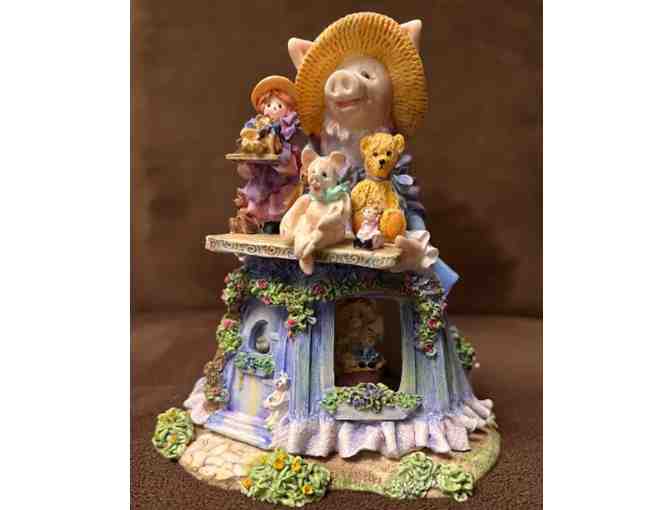 4 1/2" tall x 4" diameter. Includes 7 pigs, 3 dolls, 7 bears, 1 bearflower.