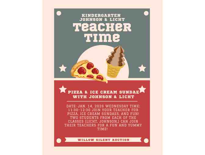 Date: Jan. 14, 2026 Wednesday Time: 11:30-12:30 Join your teacher for pizza, ice cream sundaes, and fun! Two Students from each of the Classes (Licht, Johnson,) can join their teachers for a fun and yummy time!