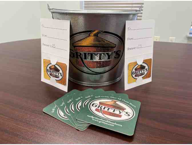 Enjoy two $25 gift cards to Gritty McDuff's, Gritty's coasters, and a Gritty's bucket in this special bundle from one of our favorite pubs!