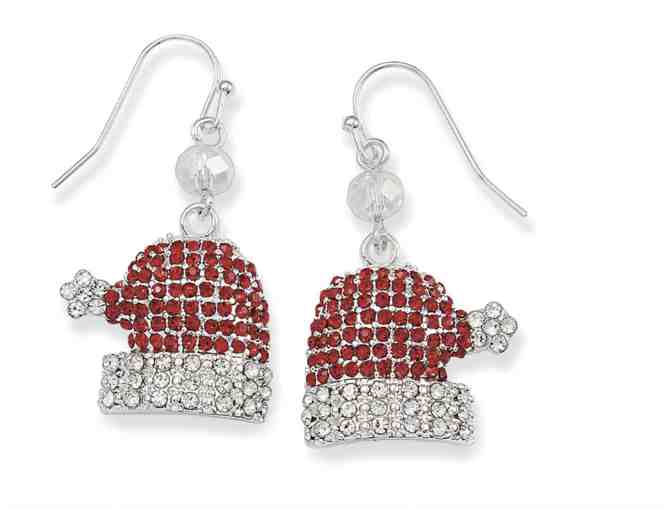 Get in the holiday spirit with our cute Santa hat earrings that sparkle with red and clear crystals.