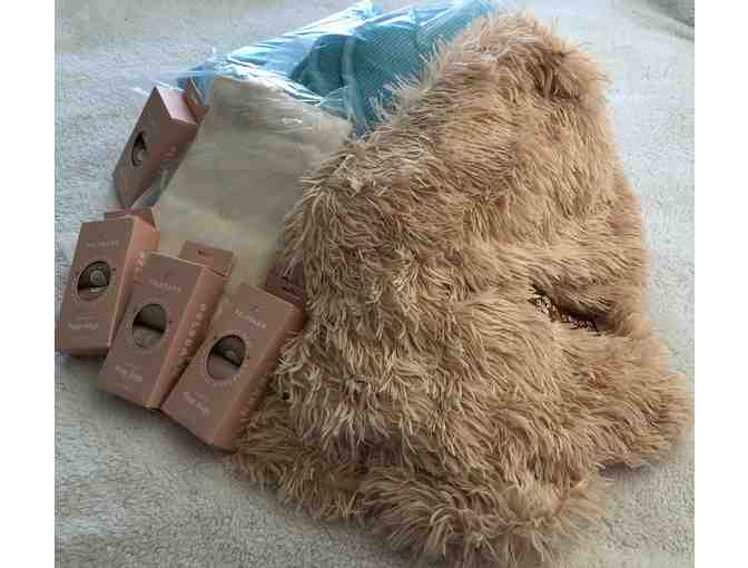 You are bidding on a collection of items from Pelsbarn.  The collection includes 4 boxes of eco poop bags, one original Pelsbarn calming blanket, two car throws (medium in blue) and one canvass shopping bag.