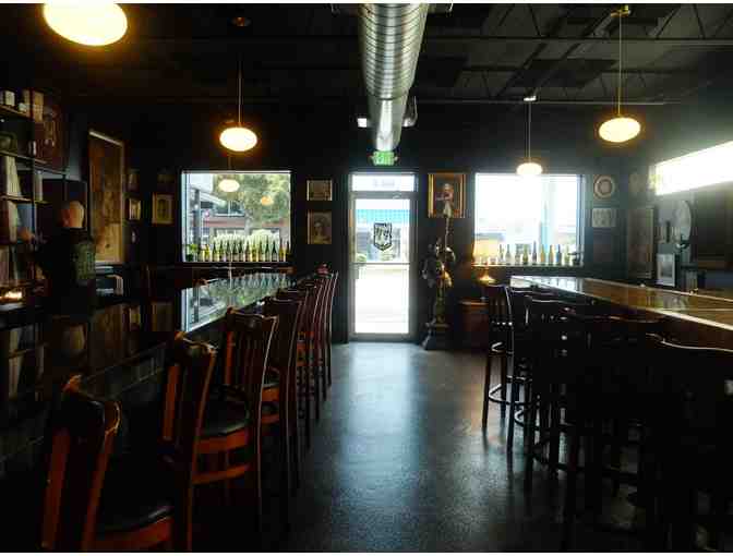 We offer a daily rotating glass list, as well as daily food offerings by Nice Guys Pizza.