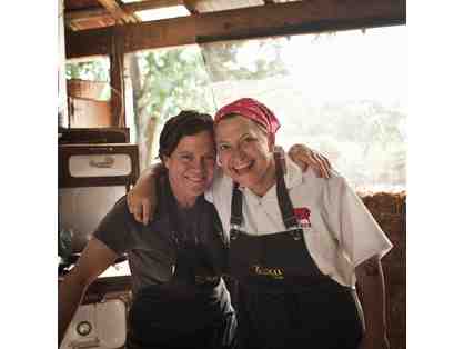 Chefs are Lowell Sheldon (Alum '99) and Natalie Goble of Handline and Peter Lowell's, Daniel Kedan of Backyard, Jeremy Whitcomb and Natalie Lamme of Odd Couple Catering, Joe Zobel of Peter Lowell's, Emma Uribe of Handline, Farmers Adam Davidoff and Ryan Powers of New Family Farm, and Farmer Dana and Bill Dator of Summerfield Waldorf School and Farm. Service orchestrated by Nick Peyton of Cyrus, Healdsburg Bar & Grill and Two Birds/One Stone, with help from Karla Peyton.