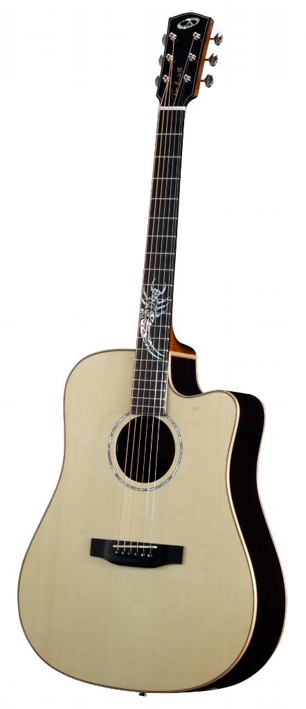 The Stonefly guitar is heirloom quality, and features a beautifully detailed inlay, which is based on the film tour logo. This custom inlay was painstakingly designed and crafted from mother of pearl. The Stonefly guitar is a classic dreadnought updated with a smooth cutaway and a beautiful spoked rosette. This instrument’s classic combination of handpicked tone woods combine with Bedell’s trademark craftsmanship to create a deep, bold and memorable sound.