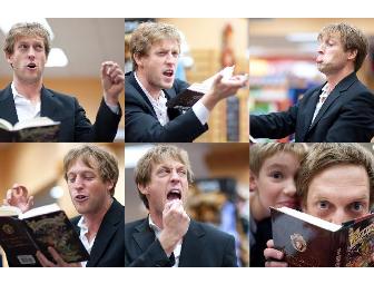 He is also in high-demand for speaking engagements, but particularly loves going to schools or libraries, and they love him back!  He gets them jazzed about reading, about writing, about the colorful world around them...  In his words "Spastic, and Theatrical!"  In our words "Brilliant, silly, irreverent, and totally charming  --  kind of like Robin Williams as Morc, but for the next generation"!