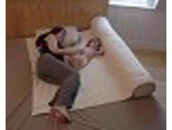The bolster can be used before baby arrives! The pregnancy body pillow gives the mother to be a great night's sleep before baby is even born. The extra large sleeping pad is made of 4 thick, luxurious layers of 100% organic cotton flannel. Mom and baby get a super soft, super absorbent sleeping surface. The pad readily absorbs leaked breast milk from night time nursings as well as mishaps from baby. The Humanity Family Sleeper makes sleep time more comfortable while protecting your sheets and mattress at the same time.