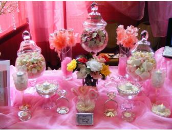 Beautifully assorted glass vases will hold yummy varied candy at your event for your guests to enjoy or take home!  Our candy buffets are completely customizable to your theme, colors, tastes and likings.
