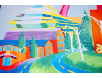 Local painter and city councilor, Dave Marshall has provided a view of the "Casco Bay" area in vivid detail, reminiscing of the days you can grab a beer and pizza and gaze at the water. Ah, summers in Maine.... Enjoy all year long! (Unframed on sturdy print paper.)