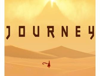 Journey video game package, which includes: 1 PS3 game disc, autographed by Game Director, Jenova Chen; Art Director & Lead Artist, Matthew Nava; and Composer, Austin Wintory; 1 copy of the game soundtrack, autographed by Composer, Austin Wintory; Game Director, Jenova Chen; and Art Director & Lead Artist, Matthew Nava; and 1 copy of The Art of Journey book, autographed by Game Director, Jenova Chen and Art Director & Lead Artist, Matthew Nava.