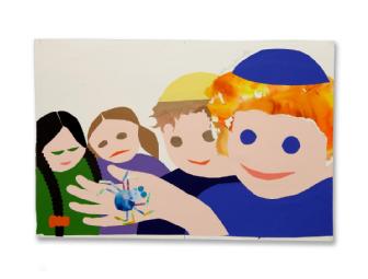 The Sammy Spider books by Sylvia Rouss are modern-day Jewish classics, thanks in major part to Kahn's bold, timeless, brilliantly colored cut and torn paper art. This one-of-a-kind 18 x 12" piece from Sammy Spider's First Day of School would make a cherished new baby or birthday gift for any Jewish child. Holy moly, I cannot believe she even donated this. Kahn's works routinely sell for $600. You get a copy of the book, too.