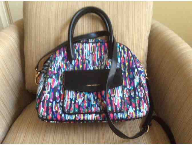 This purse was gently used and barely shows any signs of wear. It has a detachable/adjustable shoulder strap. It measures 10" H x 13" W x 4" D. It is 15 inches tall including the handle.