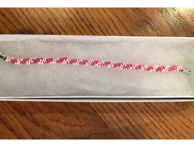 Very Delicate 7" Pink and White Braided Bead Bracelet