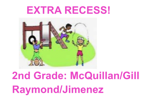 2nd Grade/ 30 minutes of Extra Recess for McQuillan/RaymondKiernan's whole class