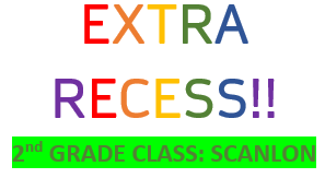 2nd Grade/Scanlon/MacDowell: 30 minutes of Extra Recess for Entire Class