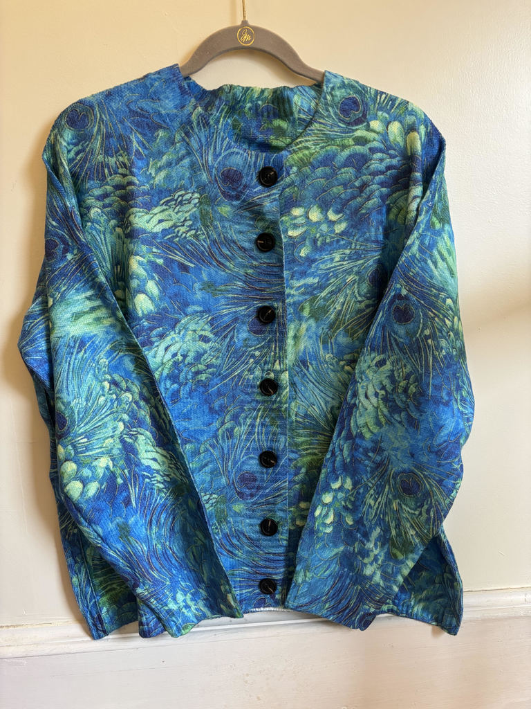 CARDIGAN SWEATER WITH PEACOCK FEATHER PRINT-SIZE XXLL